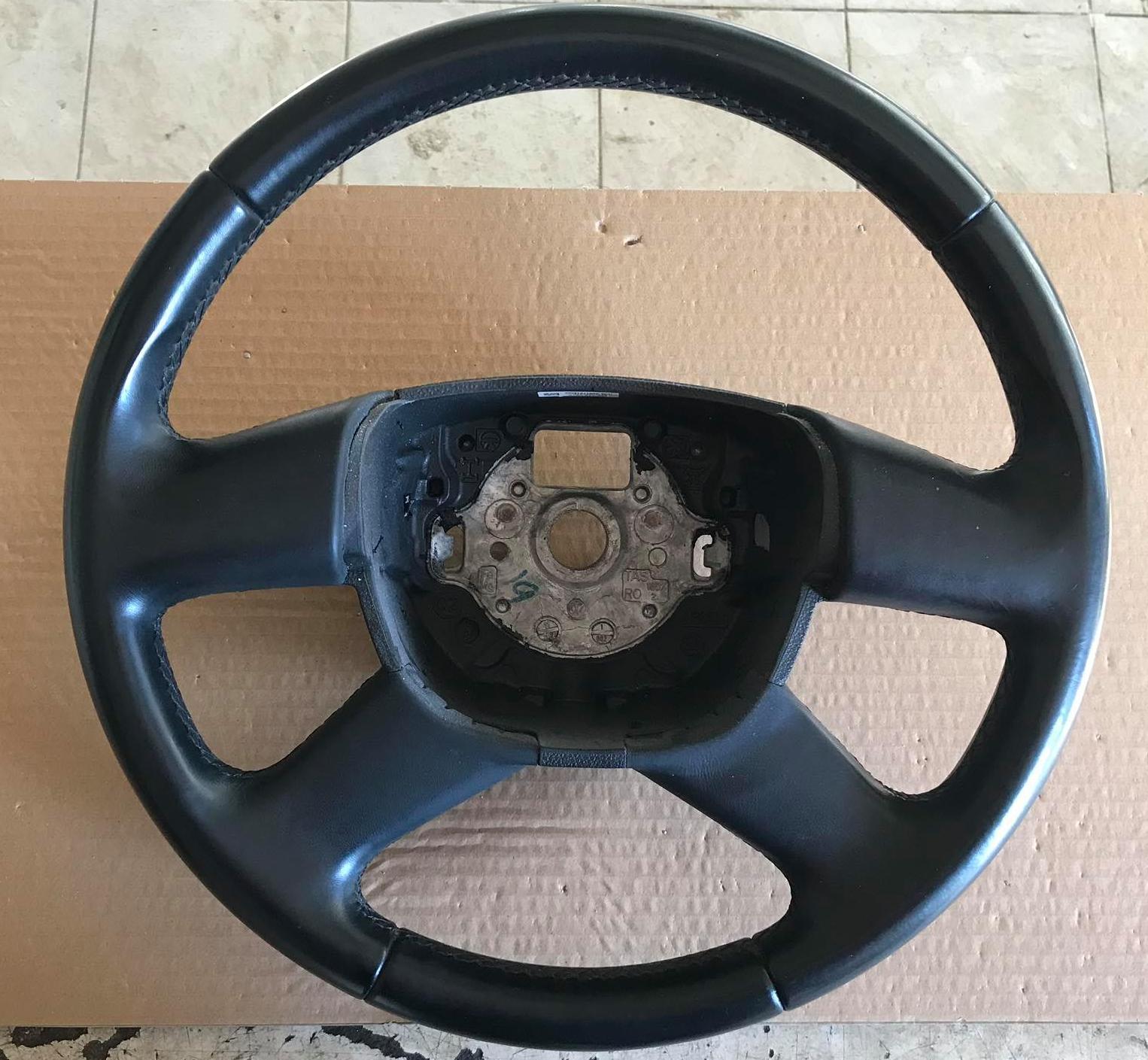 Popis: Čtyřramenný kožený volant pro vozidla s airbagem originál 3T0419091G, 3T0419091S